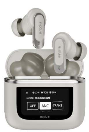 WIRELESS EARPHONE with Touch Screen Display Gray Rixus